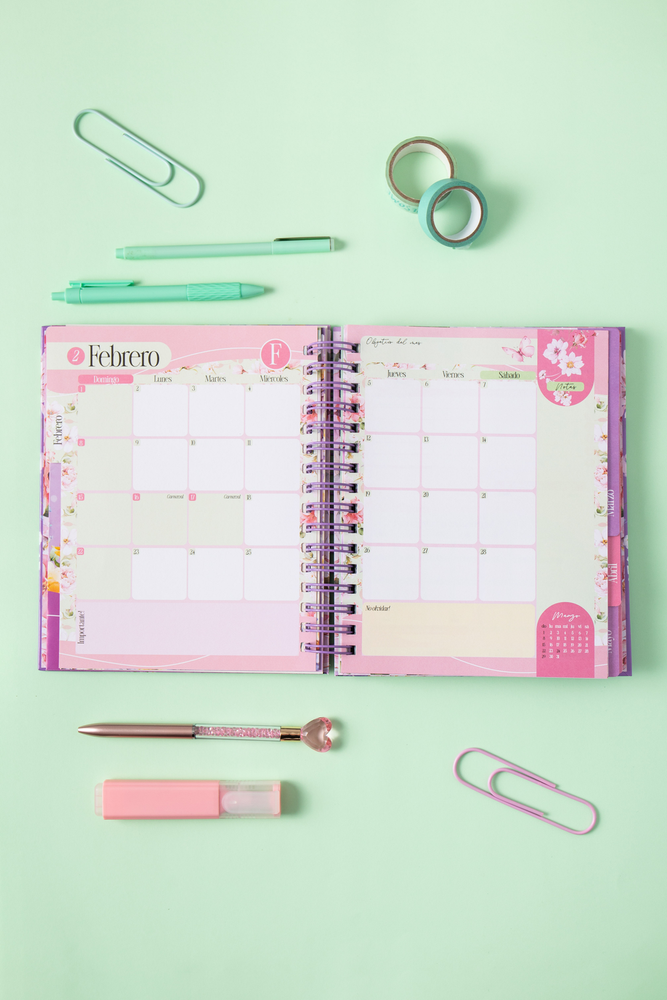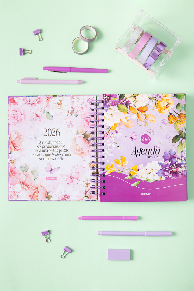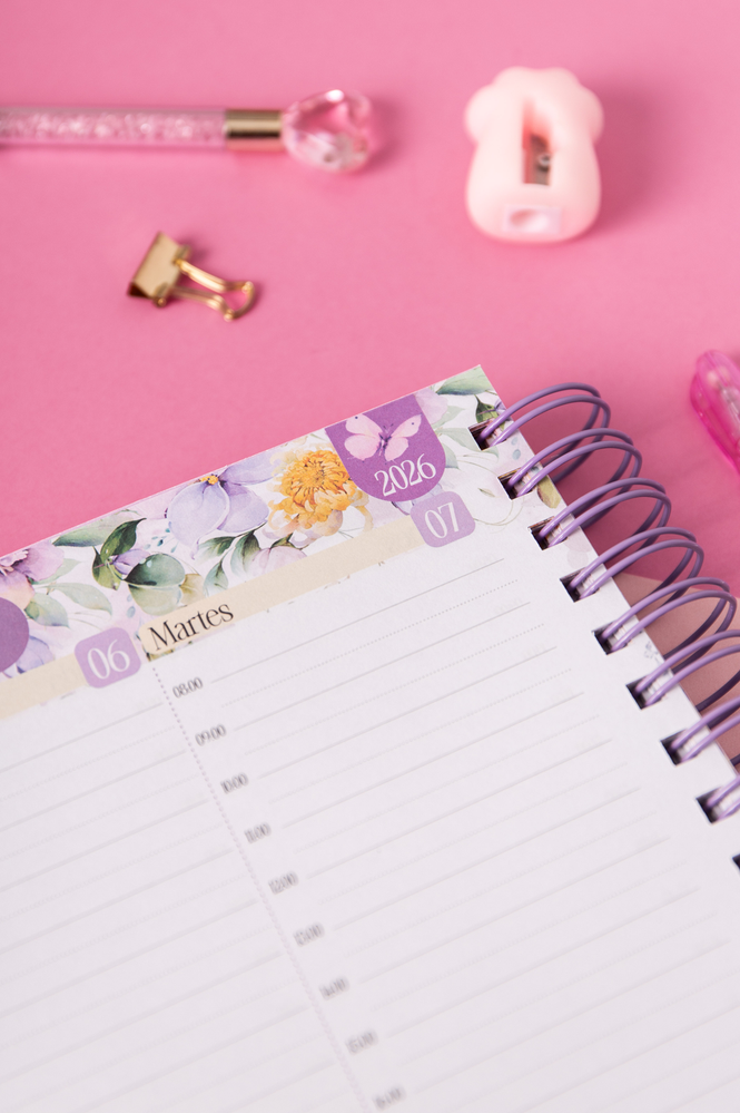 ¡La agenda premium es nuestra agenda más completa! Formato 2 días por hoja con un diseño delicado y romántico 🦋