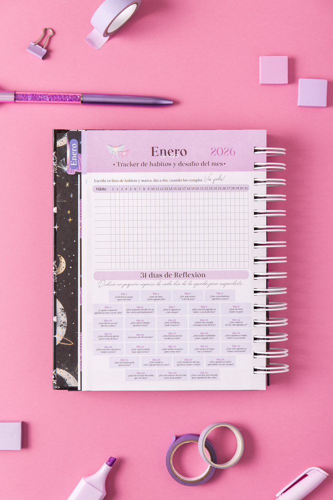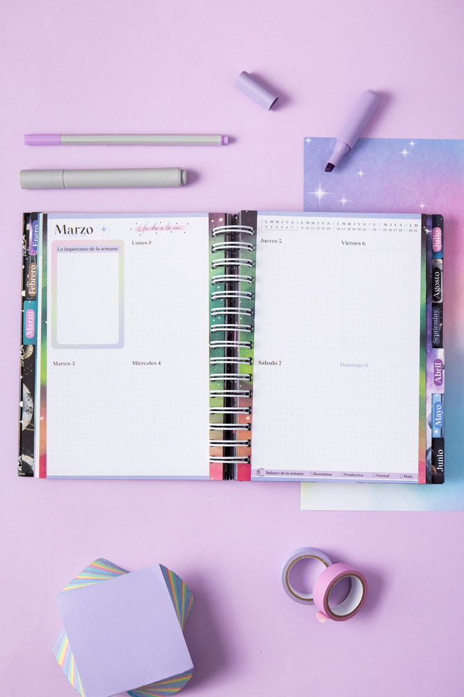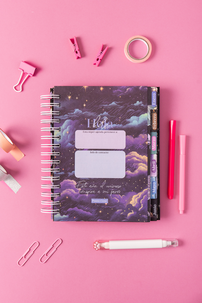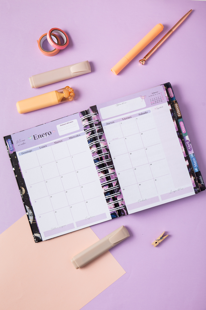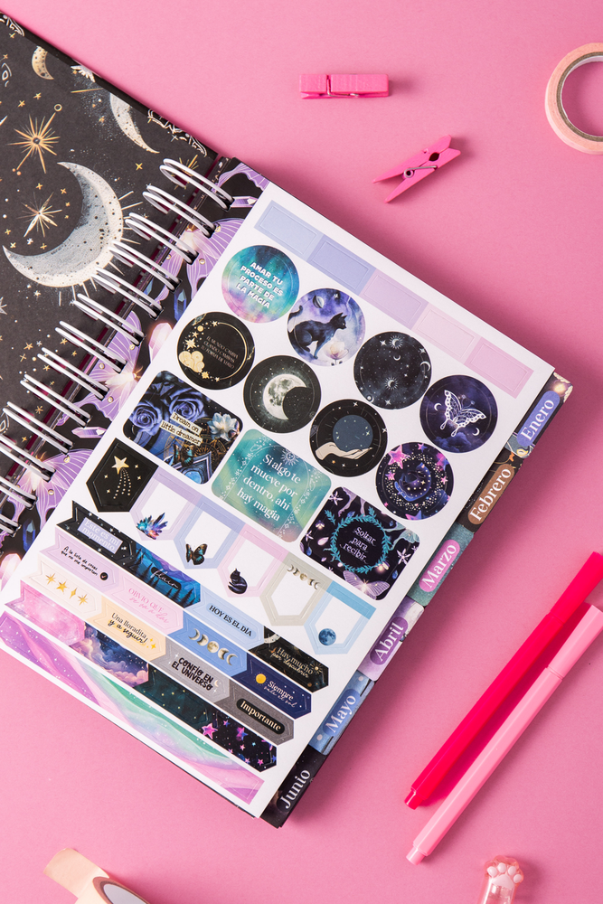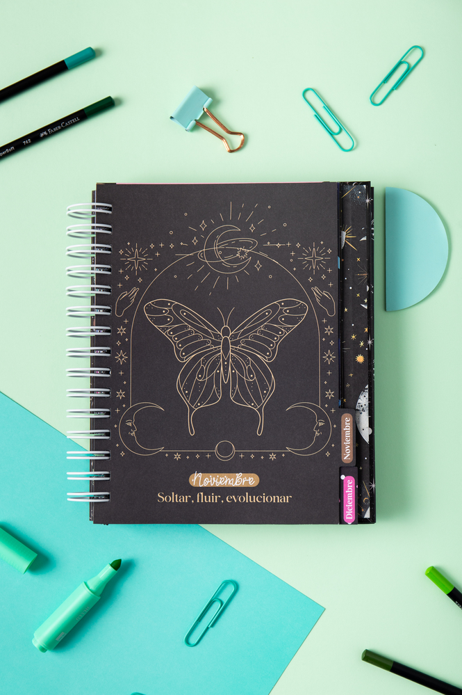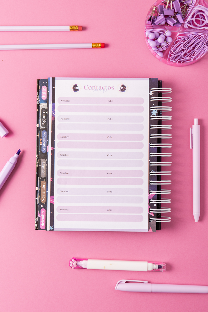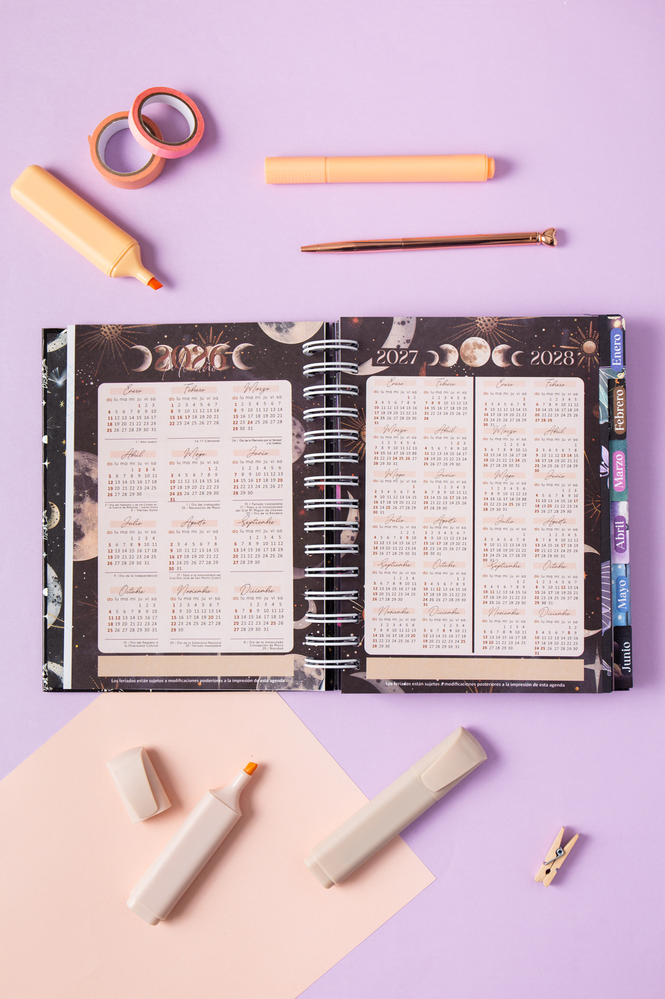 ¡Esta agenda tiene un diseño esotérico, con colores oscuros, mármoles y galaxias! 🌙