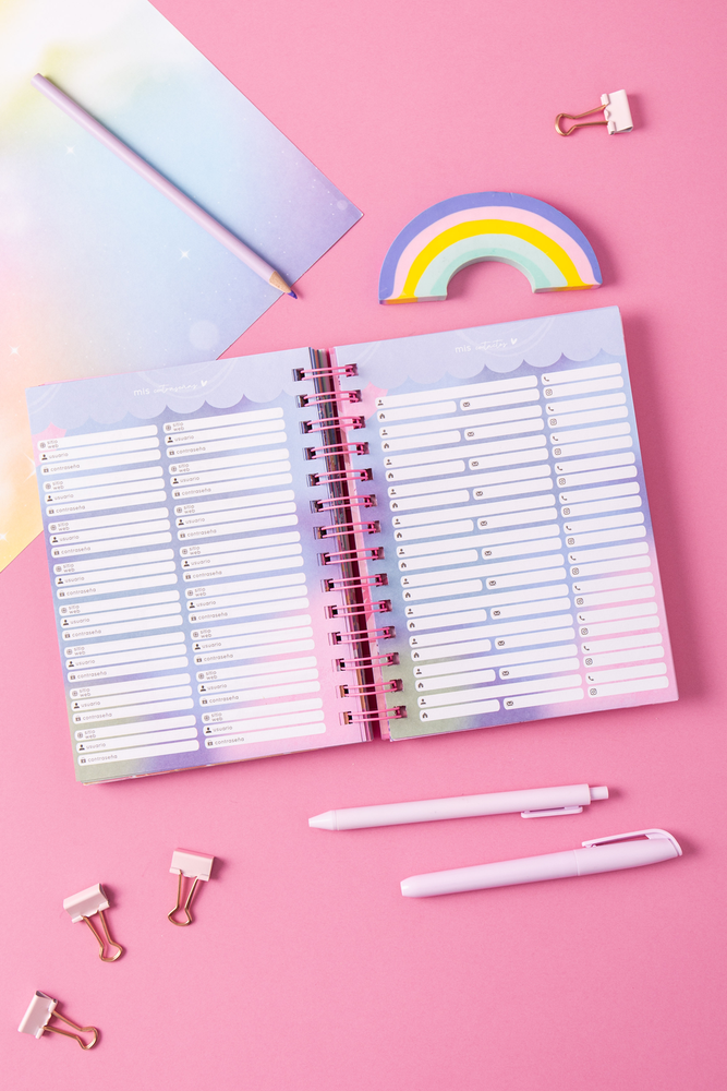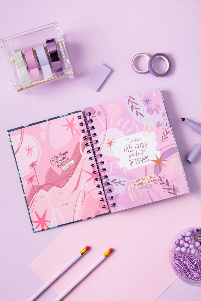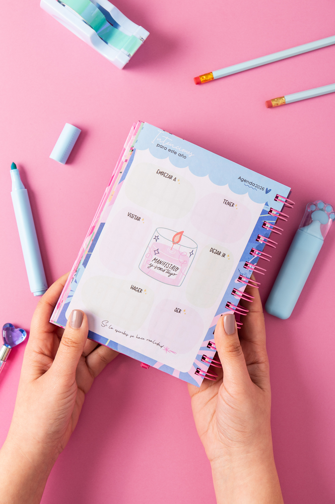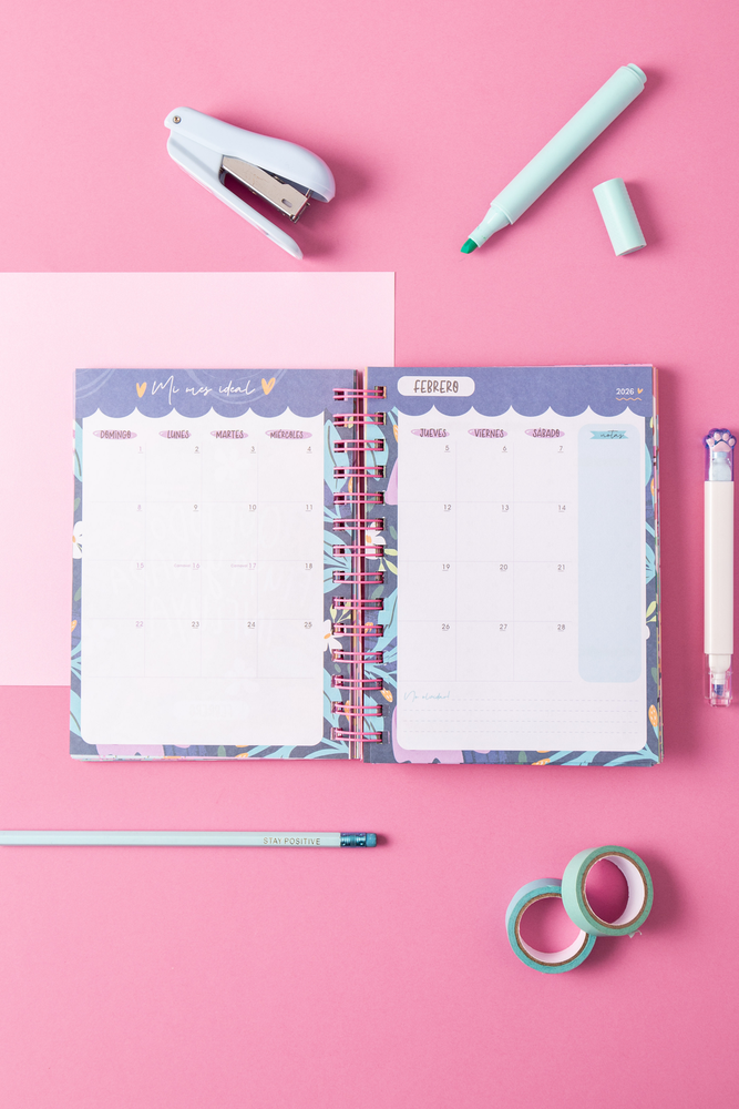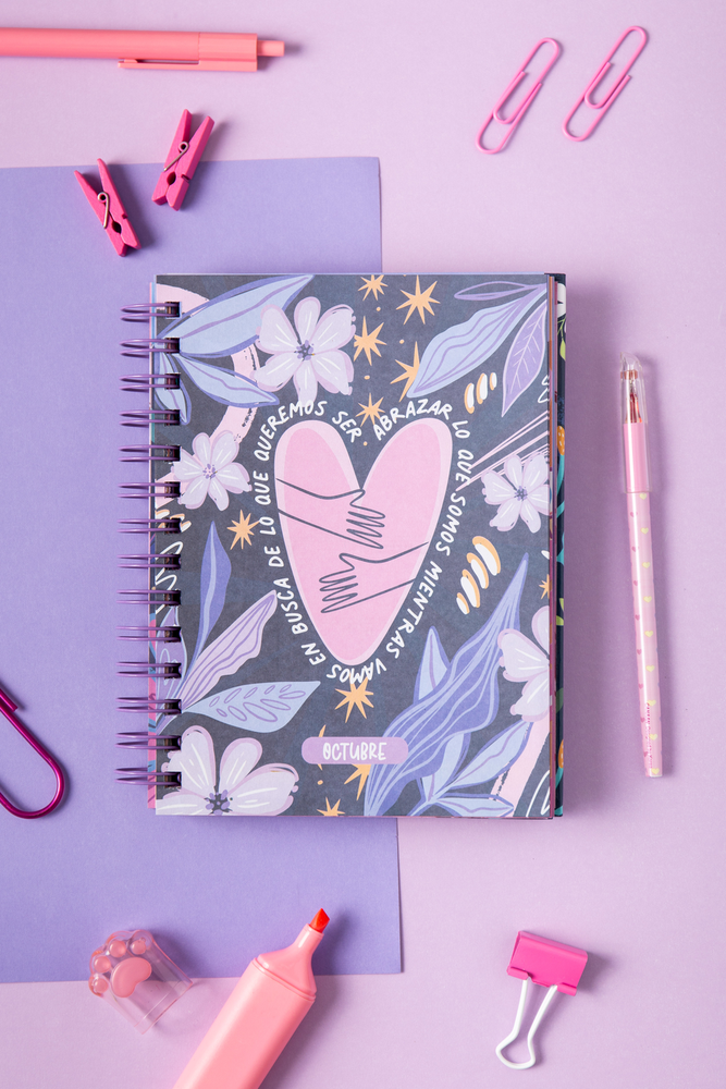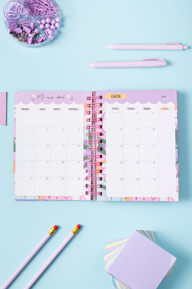 🌈 Esta agenda tiene un diseño colorido y moderno con frases positivas. Con carátulas de papel y planner todos los meses :)
