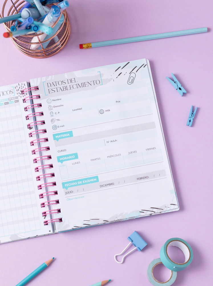 ¡Pensado para profesores, con asistencias, evaluaciones y trabajos prácticos para 15 cursos de hasta 40 alumnos! + Planificador mensual de cada mes, notas y bolsillo.
