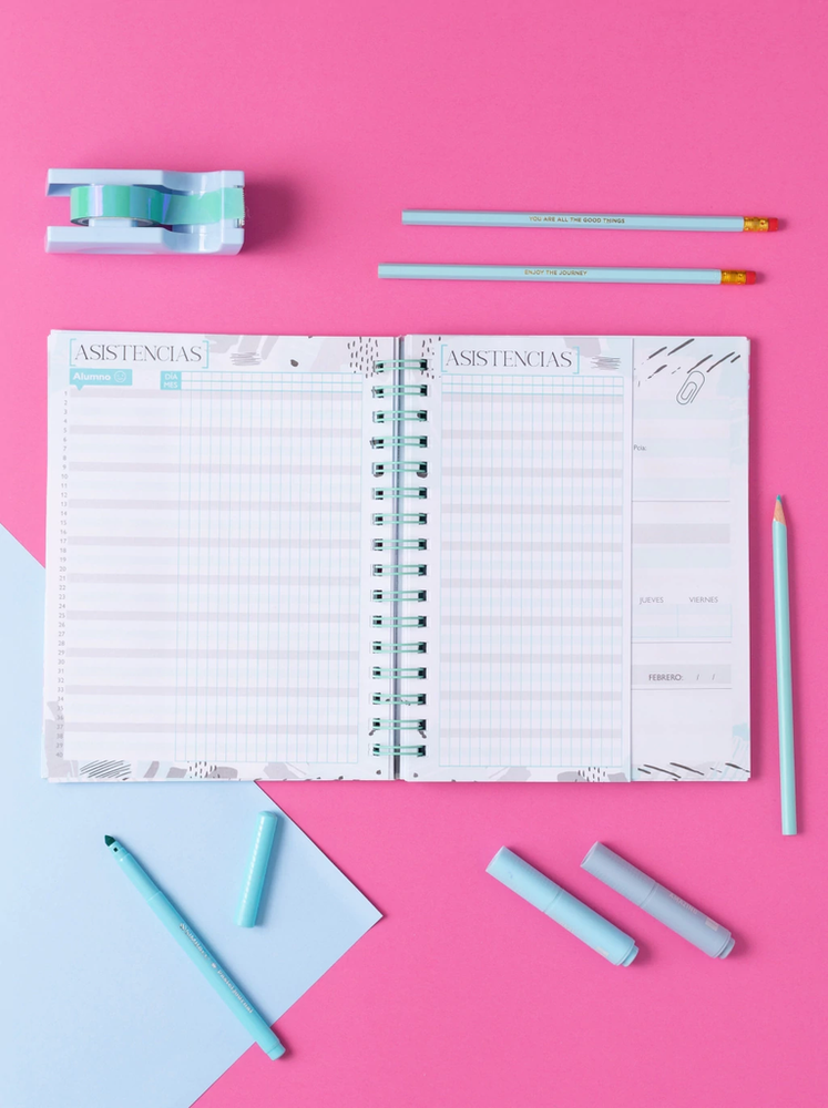 ¡Pensado para profesores, con asistencias, evaluaciones y trabajos prácticos para 15 cursos de hasta 40 alumnos! + Planificador mensual de cada mes, notas y bolsillo.