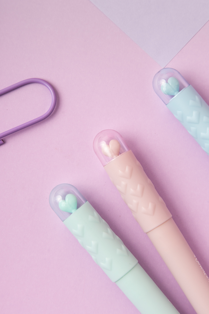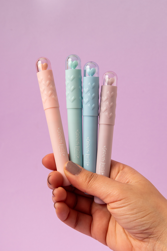 Cada pack incluye 4 colores cute, con un detalle encantador: un corazoncito que sube y baja al abrir y cerrar la tapa.