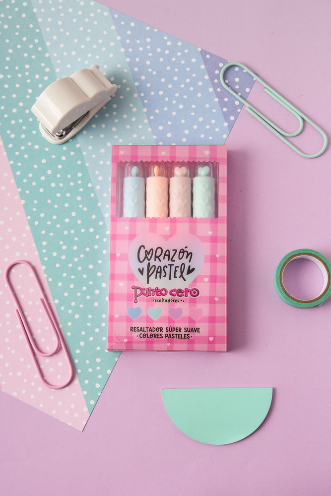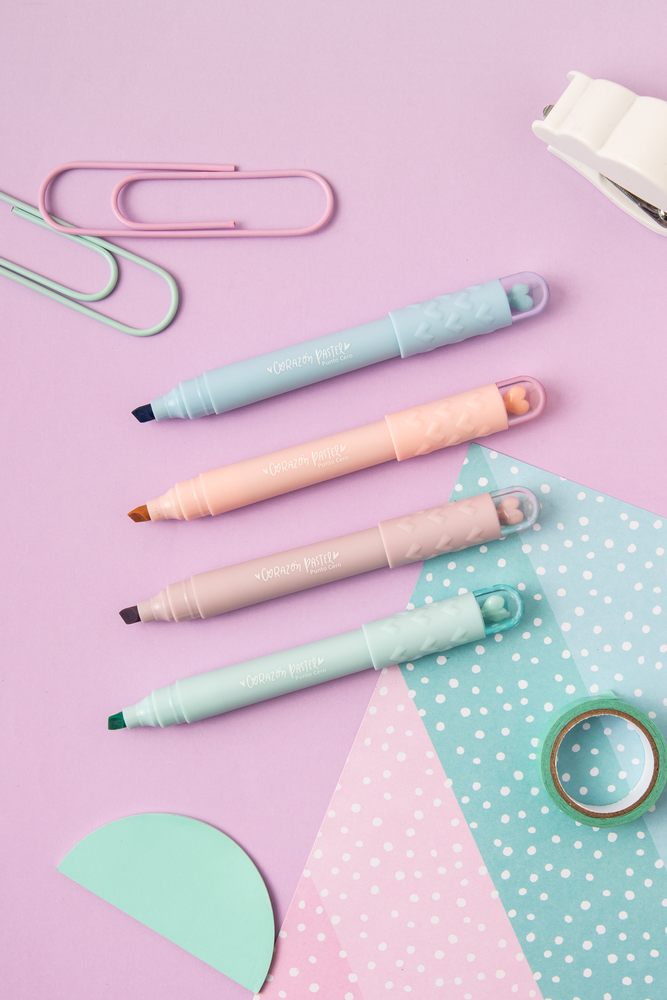 Resaltadores en tonos pasteles súper suaves, con tinta a base de agua para un trazo ligero y delicado.