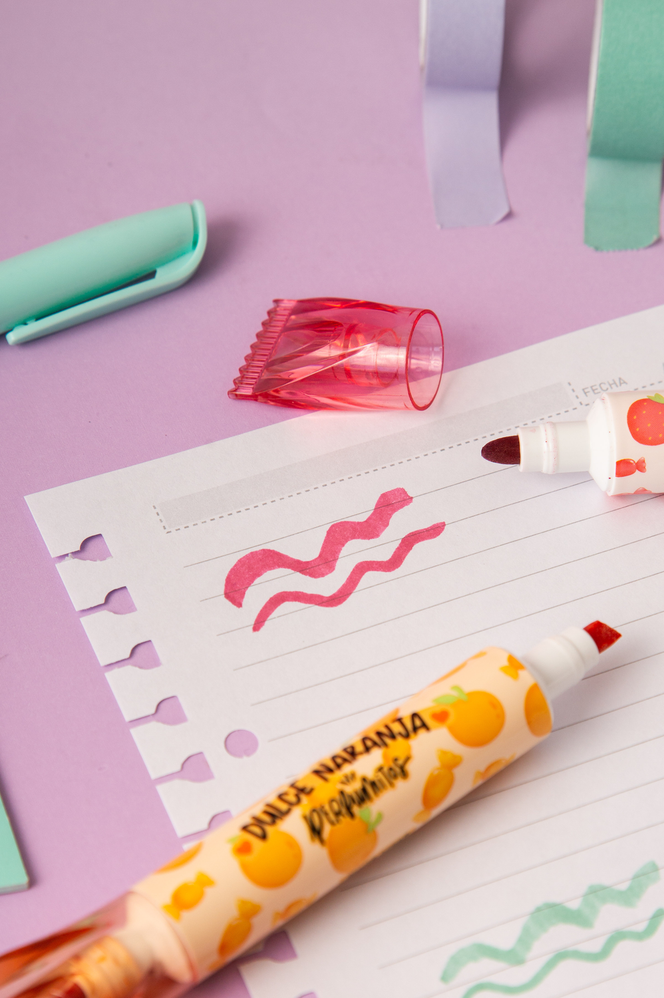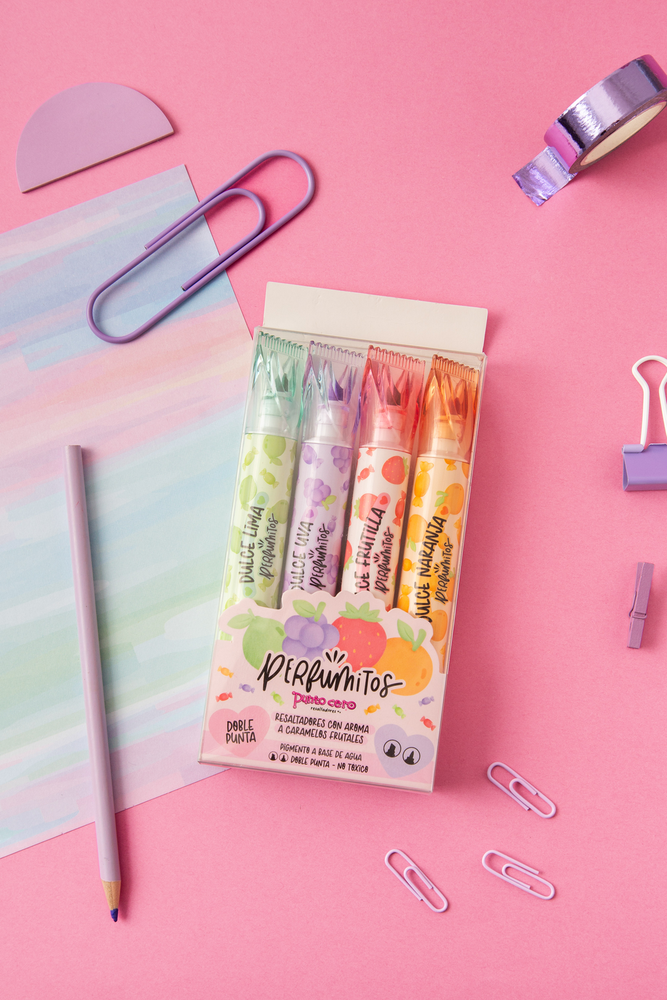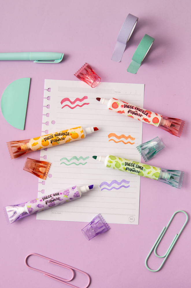 Estos resaltadores son perfectos para darle un toque divertido y original a tus apuntes. Con tinta a base de agua, vienen en 4 colores distintos y fragancias que hacen que escribir sea una experiencia mucho más dulce.