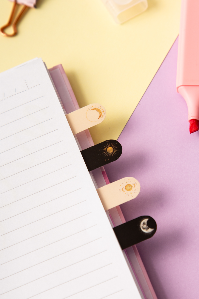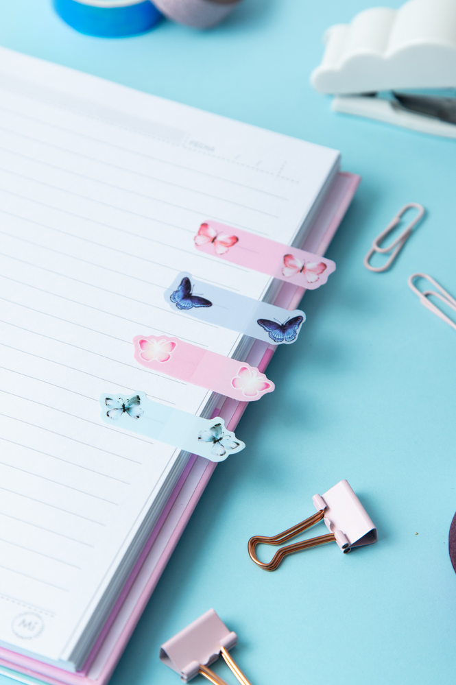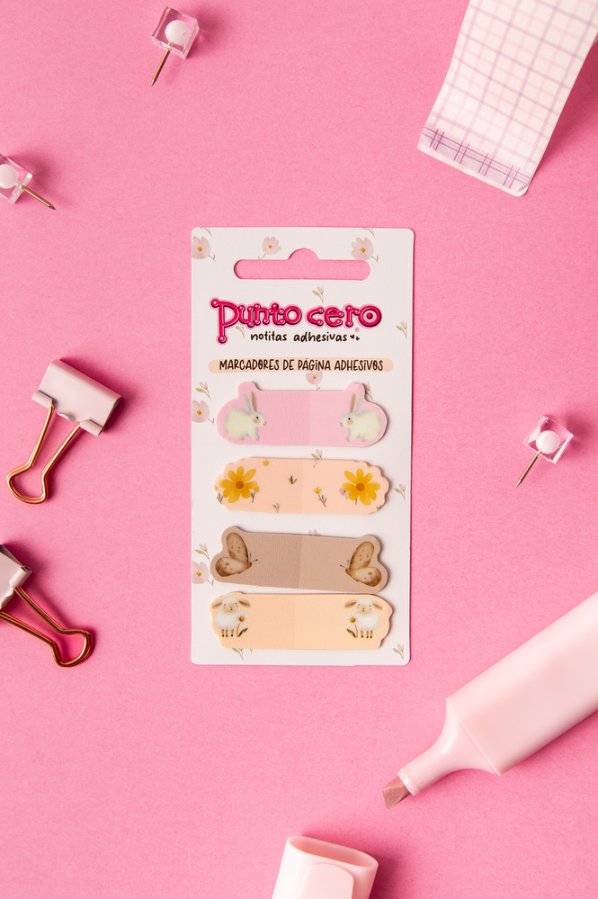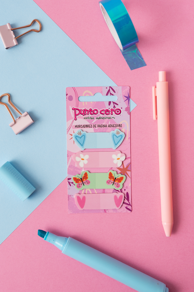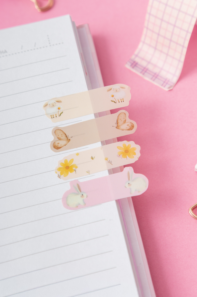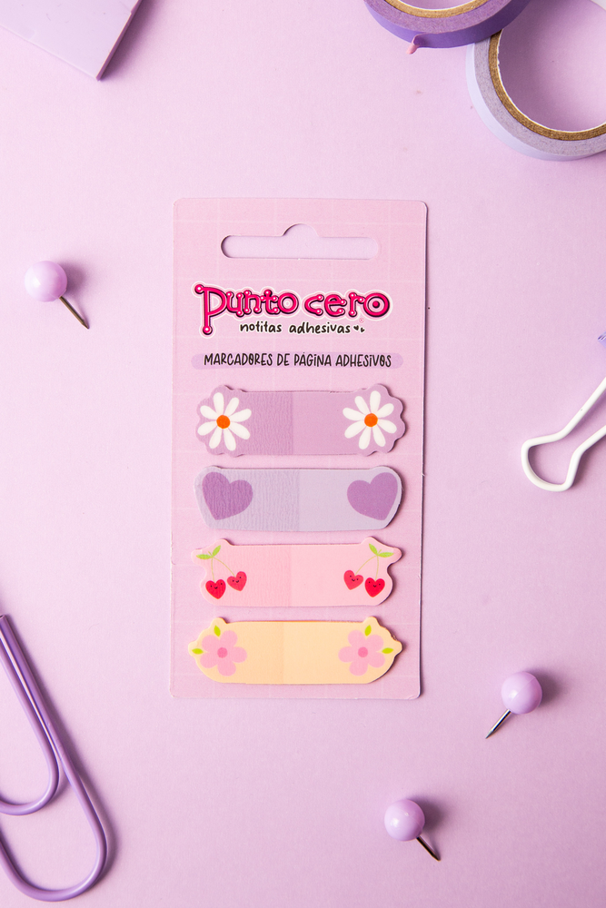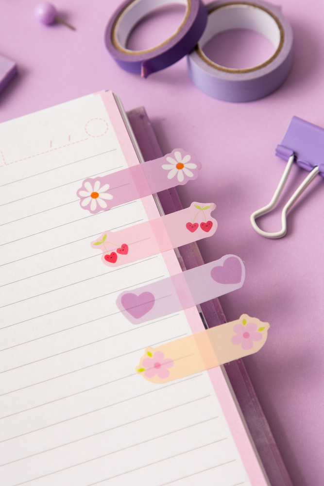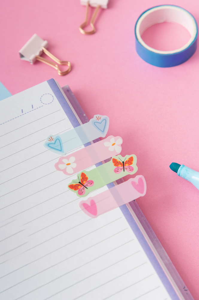 ¡Perfectos para marcar hojas importantes con los diseños más cute! Cada pack incluye 4 diseños diferentes, con 20 hojas cada uno, hechos de PVC y pegamento extra resistente.