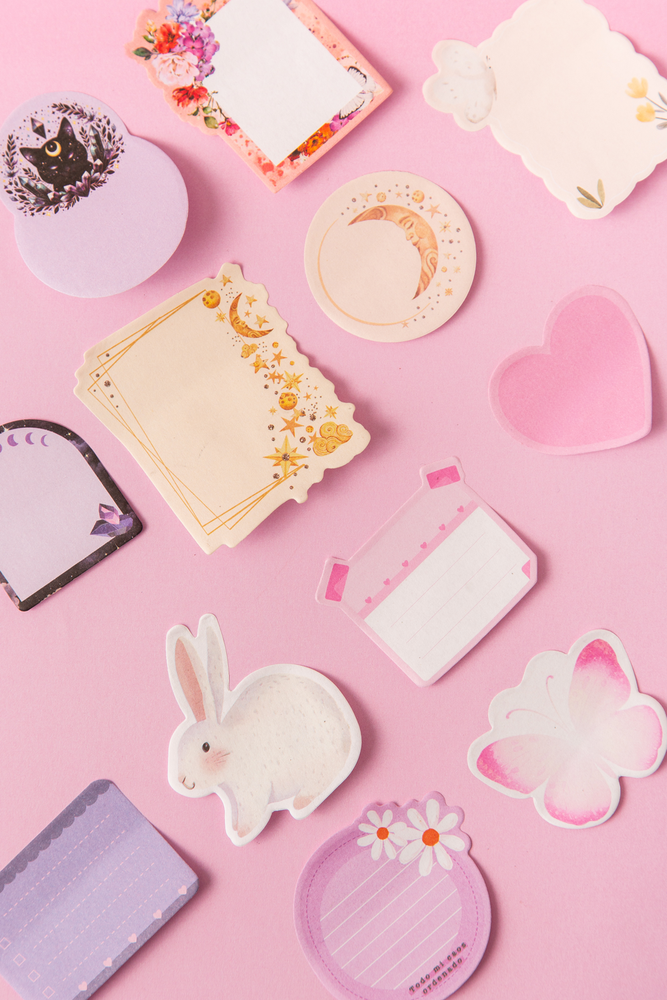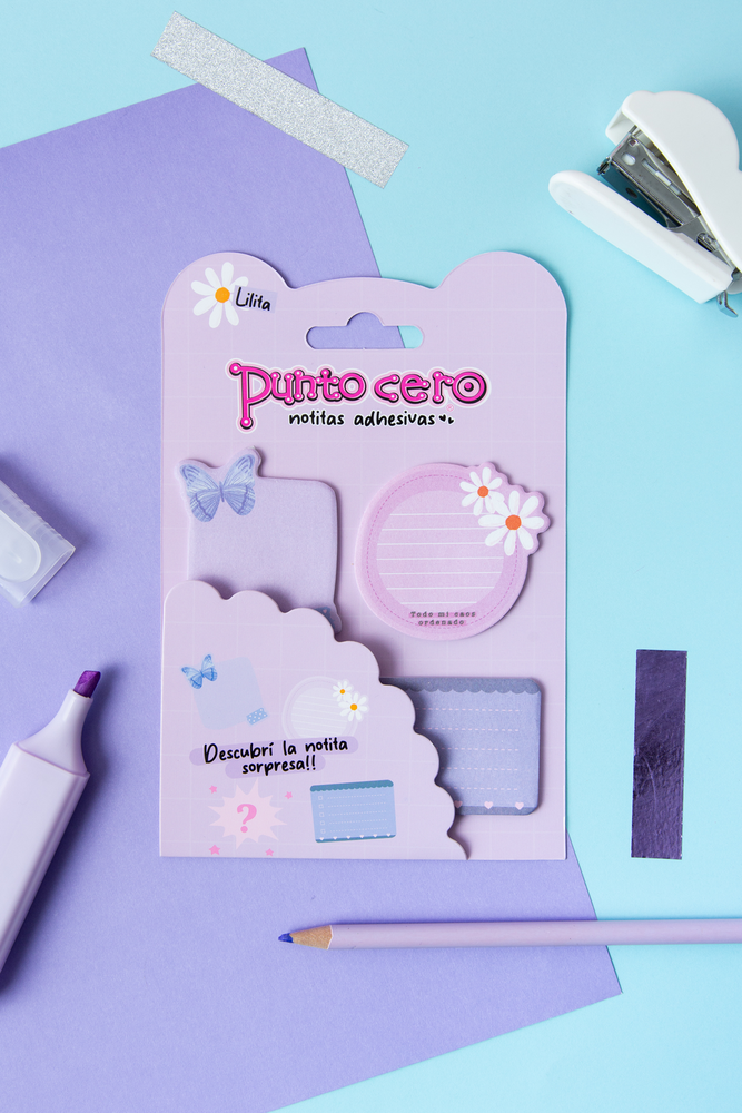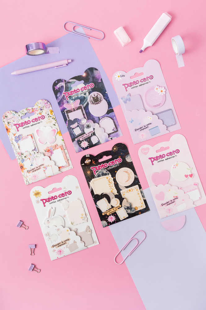 ¡4 diseños por pack y uno es sorpresa! 🎁 Este formato de notas adhesivas es único y divertido: cada pack incluye 4 diseños distintos, y uno de ellos es ¡sorpresa! Ideales para dejar mensajes, recordatorios o decorar tu cuaderno 💖