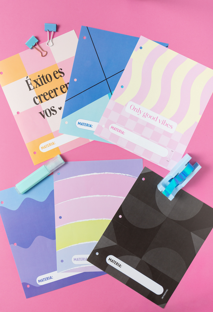 • Impresos en cartulina de 130g • Embolsados individualmente, con 6 separadores cada unidad. • Para carpeta Nº3, con 3 perforaciones